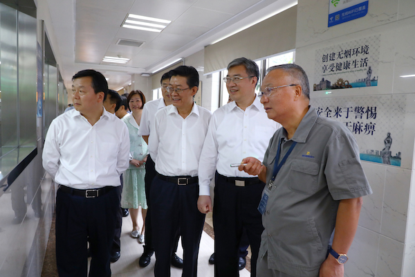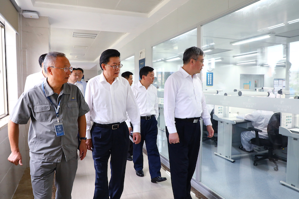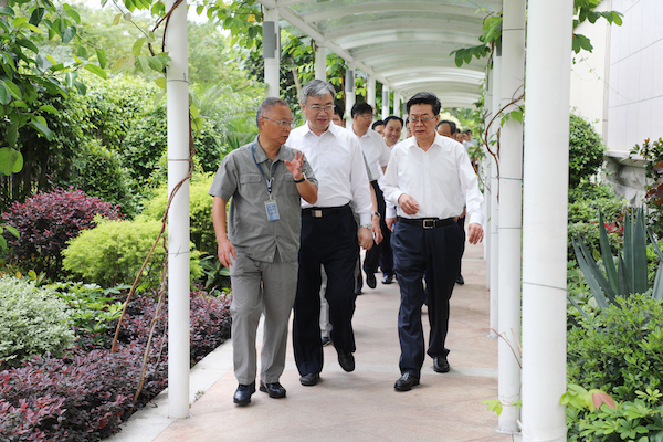 冠城鐘表珠寶集團(tuán)有限公司行政總裁、執(zhí)行董事兼珠海羅西尼表業(yè)有限公司總經(jīng)理商建光先生(左一)陪同珠海市委書記郭永航(右一)、佛山市委書記魯毅(中)等領(lǐng)導(dǎo)參觀