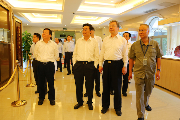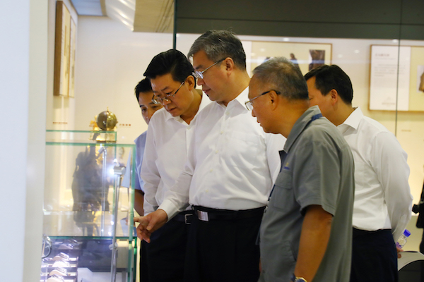 參觀考察中,珠海市委書記郭永航及佛山市黨政代表團(tuán)一行在商建光先生的引領(lǐng)下,首先來到了羅西尼鐘表博物館。秤漏、水運(yùn)儀象臺(tái)等古代計(jì)時(shí)儀器,讓領(lǐng)導(dǎo)們驚嘆于古人超群的智慧;羅杰飛擺、神秘鐘等小型觀賞座鐘和特殊動(dòng)力座鐘等藏品讓郭永航書記和魯毅書記表現(xiàn)出濃厚興趣,不時(shí)駐足欣賞,并就藏品年代、制作工藝、用途等方面與商建光先生進(jìn)行深入的交流和溝通。
