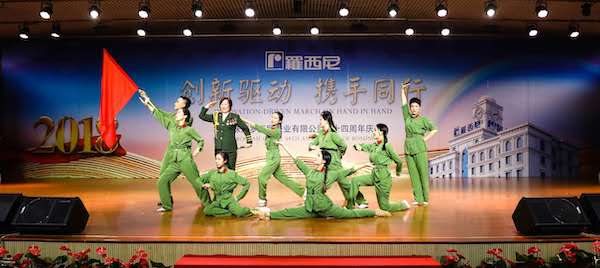 隨后,精彩節(jié)目逐一上場(chǎng)。這場(chǎng)完全來(lái)自羅西尼人自編、自導(dǎo)、自演的文藝匯演,將整個(gè)周年慶典活動(dòng)推向了高潮。古箏演奏《八月桂花遍地開(kāi)》,古色古香烘托了整場(chǎng)的氣氛;動(dòng)感活潑的歌舞《海草》迎合了年輕人的時(shí)尚潮流;由總經(jīng)辦、企管部,包括后勤部的保潔保安表演的走秀和情景劇《愛(ài)的港灣》感動(dòng)了所有羅西尼人。在平凡崗位上的保潔大媽、保安大叔手戴羅西尼腕表,自信昂揚(yáng)地走在舞臺(tái)上,此刻他們就是最閃耀的明星!幽默風(fēng)趣的家鄉(xiāng)話,情景劇則展現(xiàn)了來(lái)自天南海北的人齊聚羅西尼大家庭,體現(xiàn)出羅西尼包容博大的企業(yè)文化……
