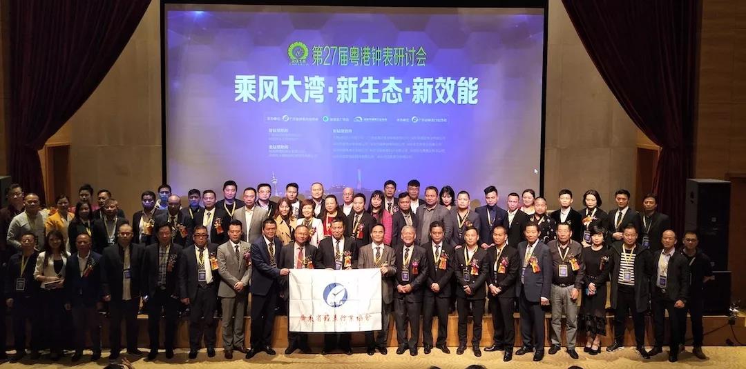 ▲香港冠城鐘表珠寶集團行政總裁、執(zhí)行董事、瑞士依波路集團董事長兼珠海羅西尼表業(yè)有限公司總經(jīng)理商建光(前排左九)出席第27屆粵港鐘表研討會