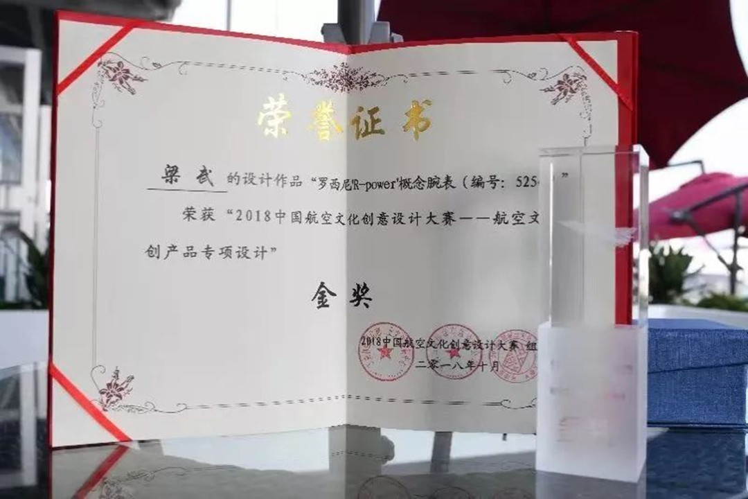 珠海羅西尼表業(yè)有限公司國家級工業(yè)設計中心的參賽作品羅西尼“R-POWER”概念腕表,在本次大賽中斬獲航空文創(chuàng)產品專項賽金獎!